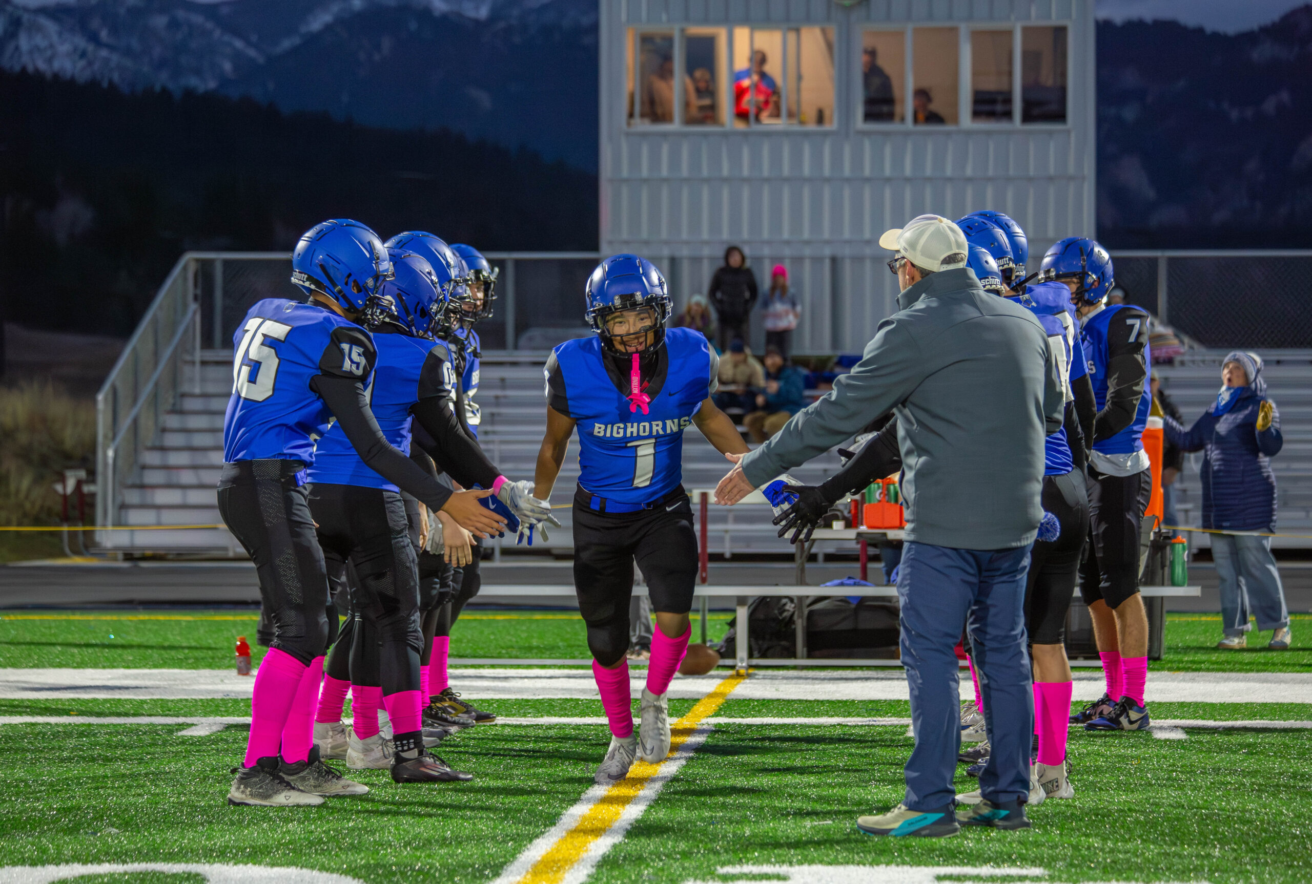 Head coach Dustin Shipman said the Big Horns made defensive adjustments at halftime, aiming to contain the Panthers’ explosive rushing attack—senior quarterback James Reedy bulldozed and sophomore running back Charlie Larsen evaded tacklers for chunk plays throughout the game, combining for five total touchdowns.