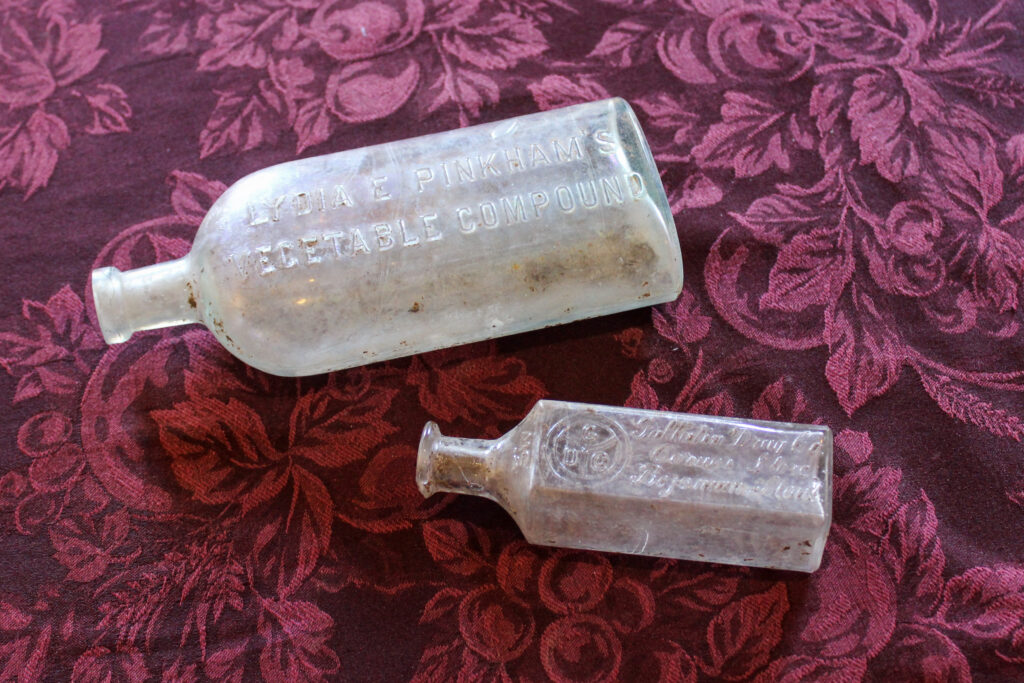 Among the most striking finds: a bottle of Lydia Pinkham’s Vegetable Compound, a widely marketed 19th-century herbal remedy often used by women seeking to prevent pregnancy; a small medicine bottle from the Gallatin Drug Company, which operated at the corner of Main and Black streets from 1904 to 1950; and a glass syringe, likely associated with drug use.